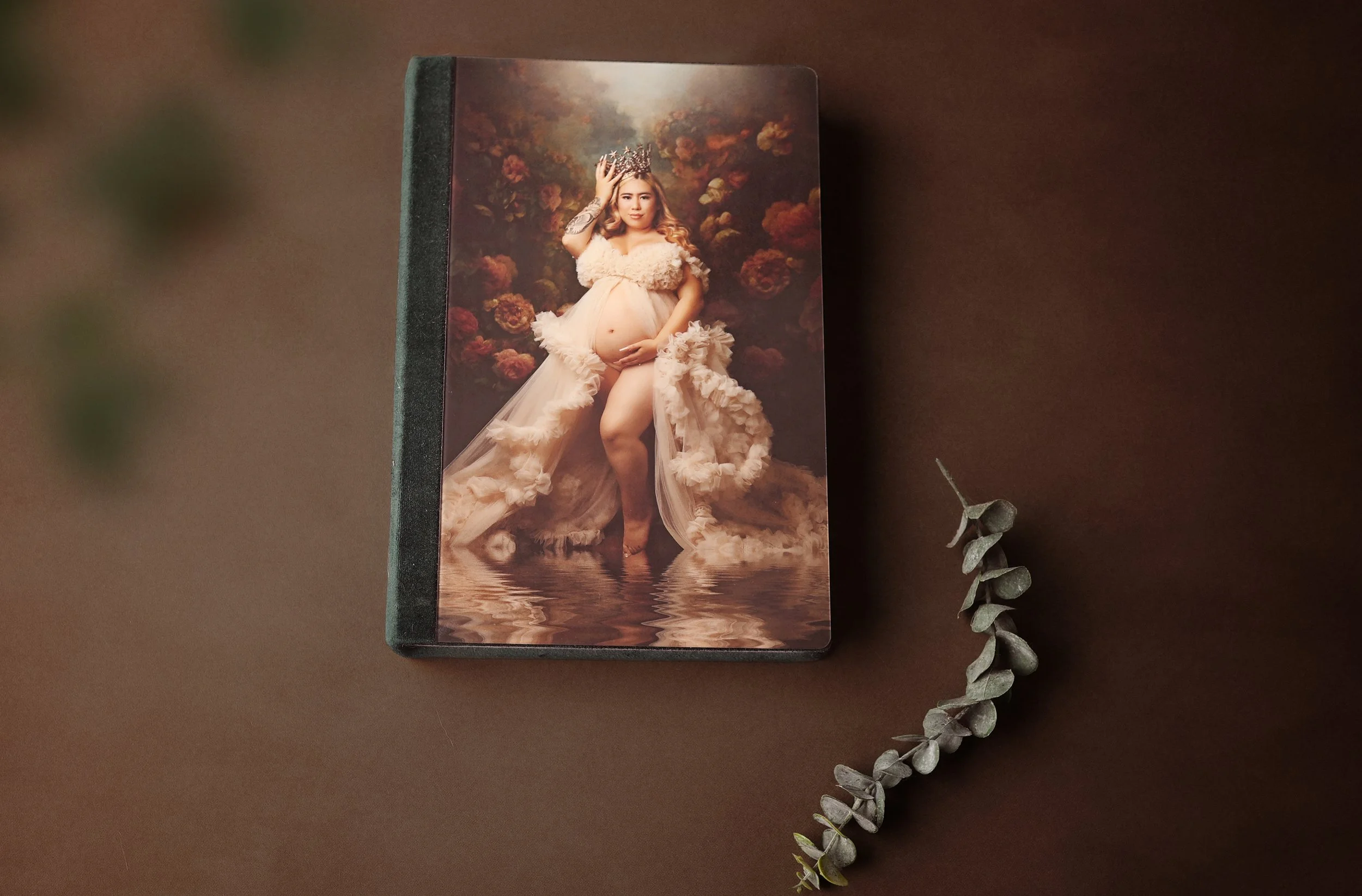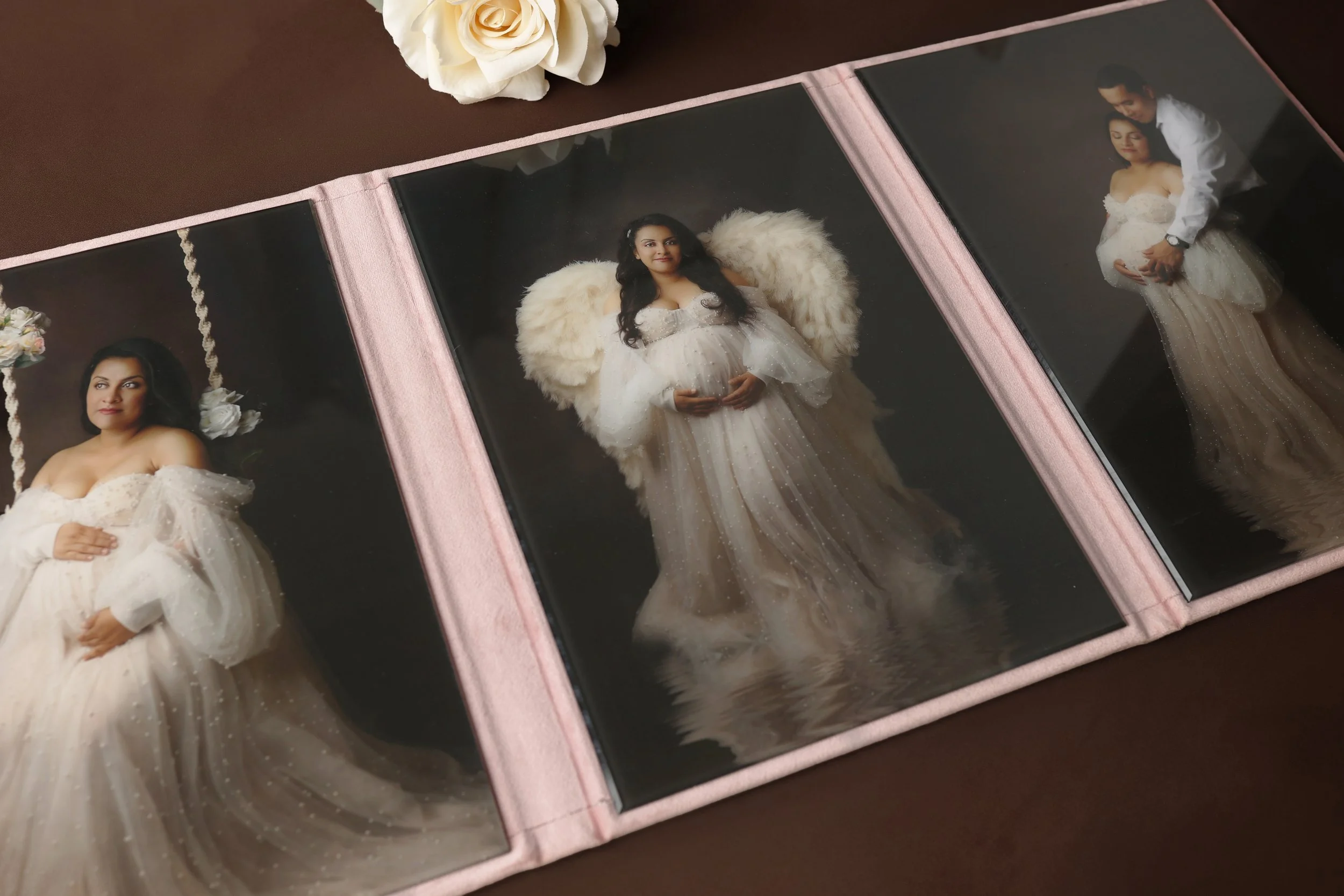 A beautifully handcrafted box is thoughtfully paired with a curated selection of stunning prints; a stunning acrylic plate adorns the cover of your box from edge to edge. Prints can either be board mounted or elegantly matted in a tasteful frame. For a truly complete and enriching experience, consider including a USB drive that offers the advantages of both charming printed pieces and convenient digital formats. Each distinctive Folio Box comes equipped with the prints of your choice, allowing you the flexibility to include anywhere from 10 up to 20 exquisite, stand-alone prints that beautifully tell your story within the box. Available in Suede Cover Material and Leather Material customized to your liking.