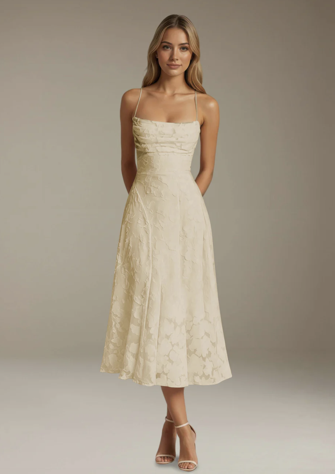 Keep jewelry elegant and minimal so it doesn't distract. For footwear, nude, white, or metallic (gold/silver) heels, wedges, or elegant flats will tie the whole look together seamlessly.